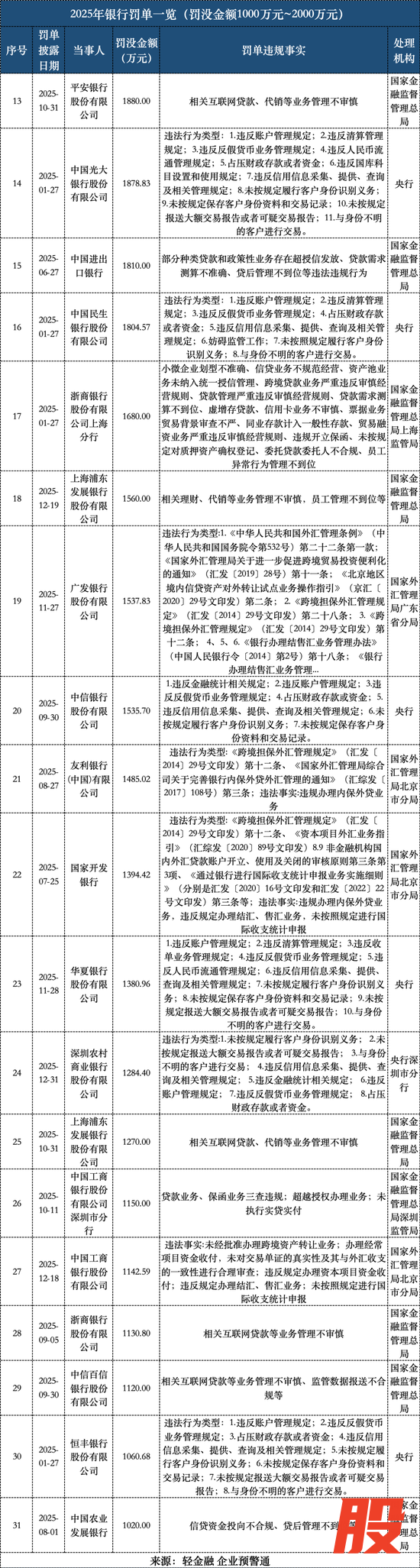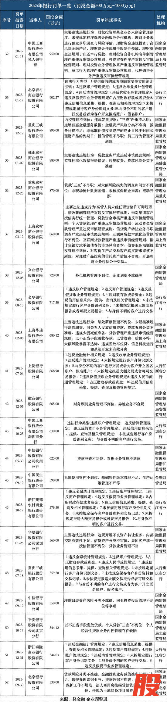 一个明显的趋势是:2025年,银行收到的大罚单变多了,折射出银行业在高质量发展转型期面临的合规短板与风险痛点。