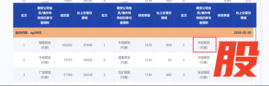 1月29日,持有较多空单合约又增加1个AG2612合约,同时,该合约成交量居前;中财期货(代客)在这些合约合计持有超过2.5万手卖单。
