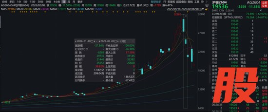 Wind数据显示,从1月30日至2月3日,这3个交易日,沪银期货主力合约累计下跌27.88%,具体每千克下跌超过8200元。