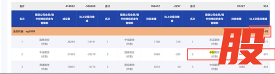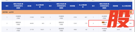 但一周后,该席位于1月27日在AG2602、AG2604、AG2606、AG2608合约的持仓排名表中均有出现,主要是持卖单量靠前,在4个合约合计持有卖单量达到1.15万手。