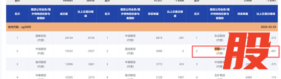 事实上,上期所官网每天会披露关于品种的其会员/境外特殊参与者成交及持仓前二十排名表。截至2月5日,中财期货仍然出现在沪银期货不少合约的持卖单量前二十的榜单。比如,在2608合约、2610合约、2612合约上,该会员单位均出现在持卖单量靠前的位列。